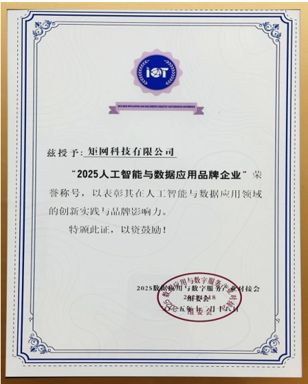 近期,由北京市科学技术协会指导,中国雄安集团城市开展投资有限公司、北京物联网智能技术应用协会、物联中国团体组织联席会联合主办的“2025中国(雄安)人工智能与数据应用峰会暨创新应用品牌企业发布会”在雄安召开,2025人工智能与数据应用品牌企业在会上发布,矩网科技有限公司(以下简称“矩网科技”)凭借在数智化、AI技术融合应用等方面的卓越表现成为获此殊荣的企业之一。